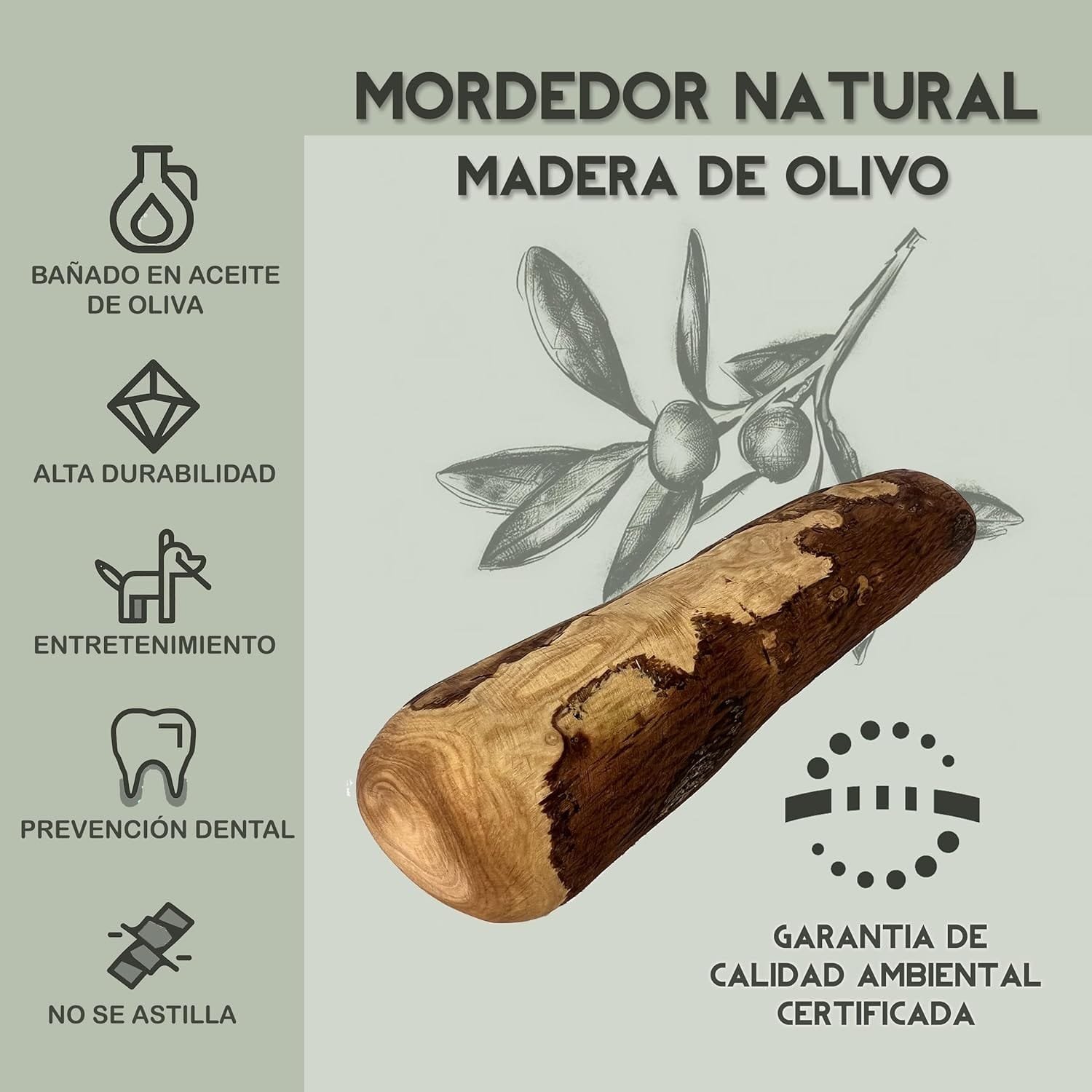 SOBRE EL MORDEDOR NATURAL DE MADERA DE OLIVO PARA PERRO