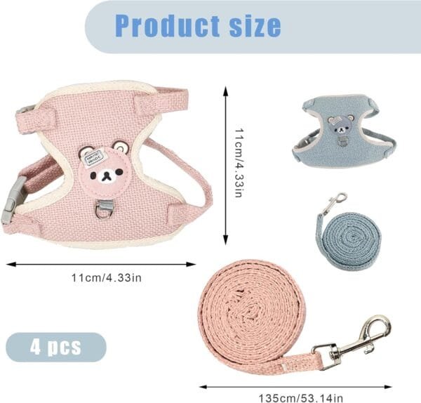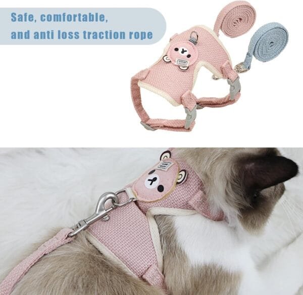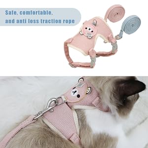 🐾 【Diseño de Moda】 El osito en el arnes gato pequeño se ve elegante y hermoso, haciendo que su mascota se vea más hermosa y encantadora. Nuestro arnés ajustable es perfecto para todo tipo de animales pequeños y será tu mejor elección. Los colores brillantes del chaleco con cinturón te asegurarán crear un ambiente armonioso y feliz con tu mascota, perro o gato.