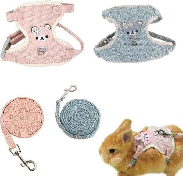 🐾【Fácil de Usar】Coloque las patas delanteras de su mascota en el arnés para perros pequeños, levante el arnés y ajuste la hebilla, luego ajuste la correa para que no atraviese la cabeza del gato. El chaleco de conejito está diseñado para evitar que su conejo tire y es perfecto para caminatas diarias, trotar, correr, caminar, hacer ejercicio, aventuras al aire libre y más.