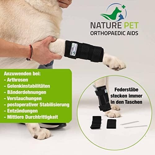 Este vendaje de perro para la articulación carpiana ofrece un nivel intermedio y completo de inmovilización de la articulación mediante barras de aluminio de forma fácil de ajustar