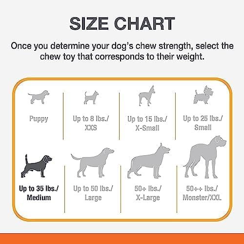 PARA PERROS ADULTOS MEDIANOS. Los juguetes masticables medianos están dirigidos a perros adultos de hasta 16 kilos.