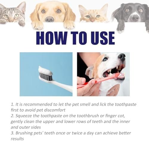 🐕 [FÁCIL DE USAR] Simplemente aplique la pasta de dientes en el cepillo y cepille suavemente los dientes de su mascota, asegurando una limpieza profunda en todo momento. ¡haga que el cuidado dental sea muy sencillo tanto para usted como para su mascota!