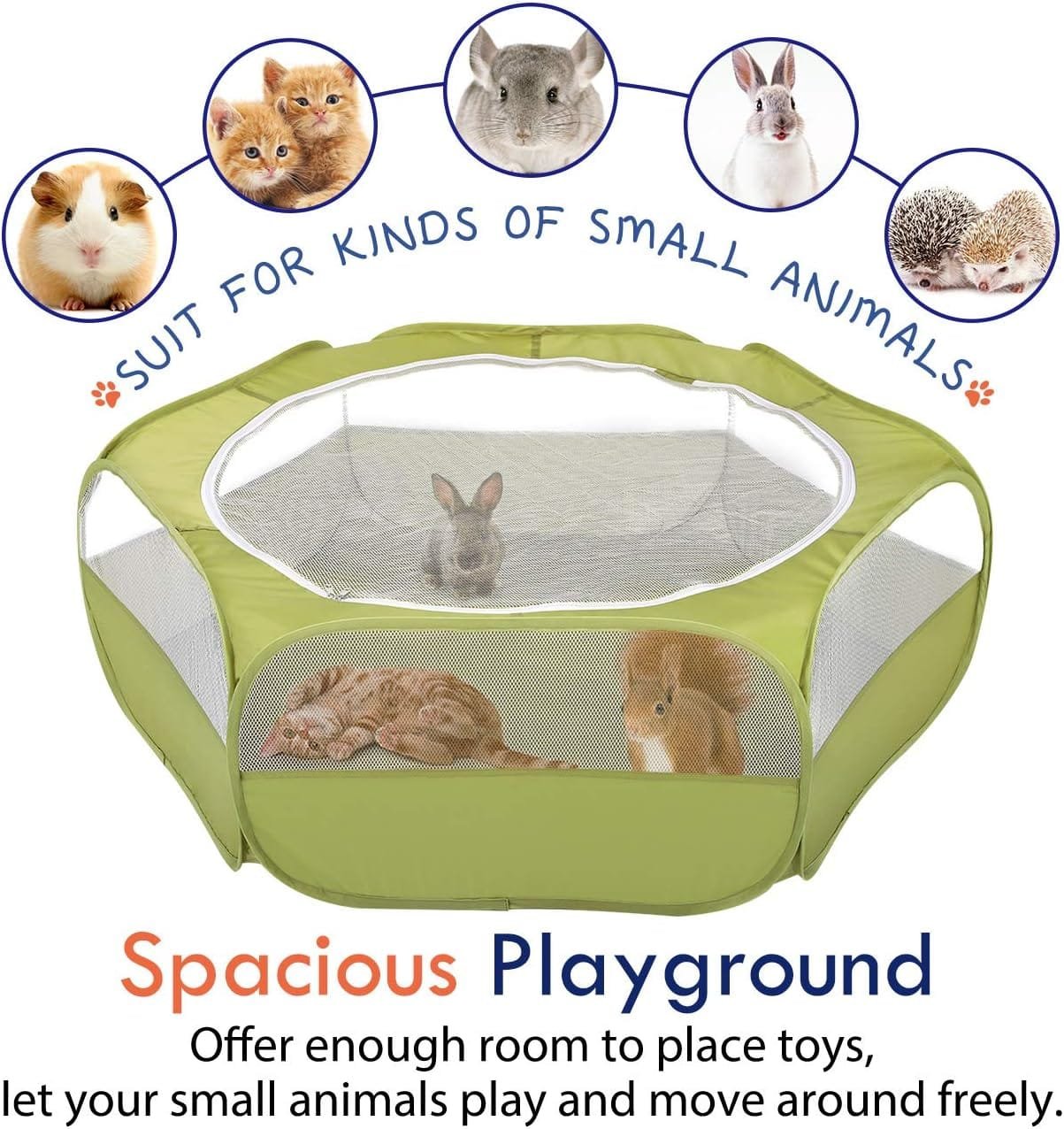 Pawaboo Valla de Animales Portátil de Oxford, Parque de Animales Plegable con Tres Varillas Metálicas y Amplia Abertura para Erizos Ardillas Gatos Dragón y Conejos – Verde de Aguacate
