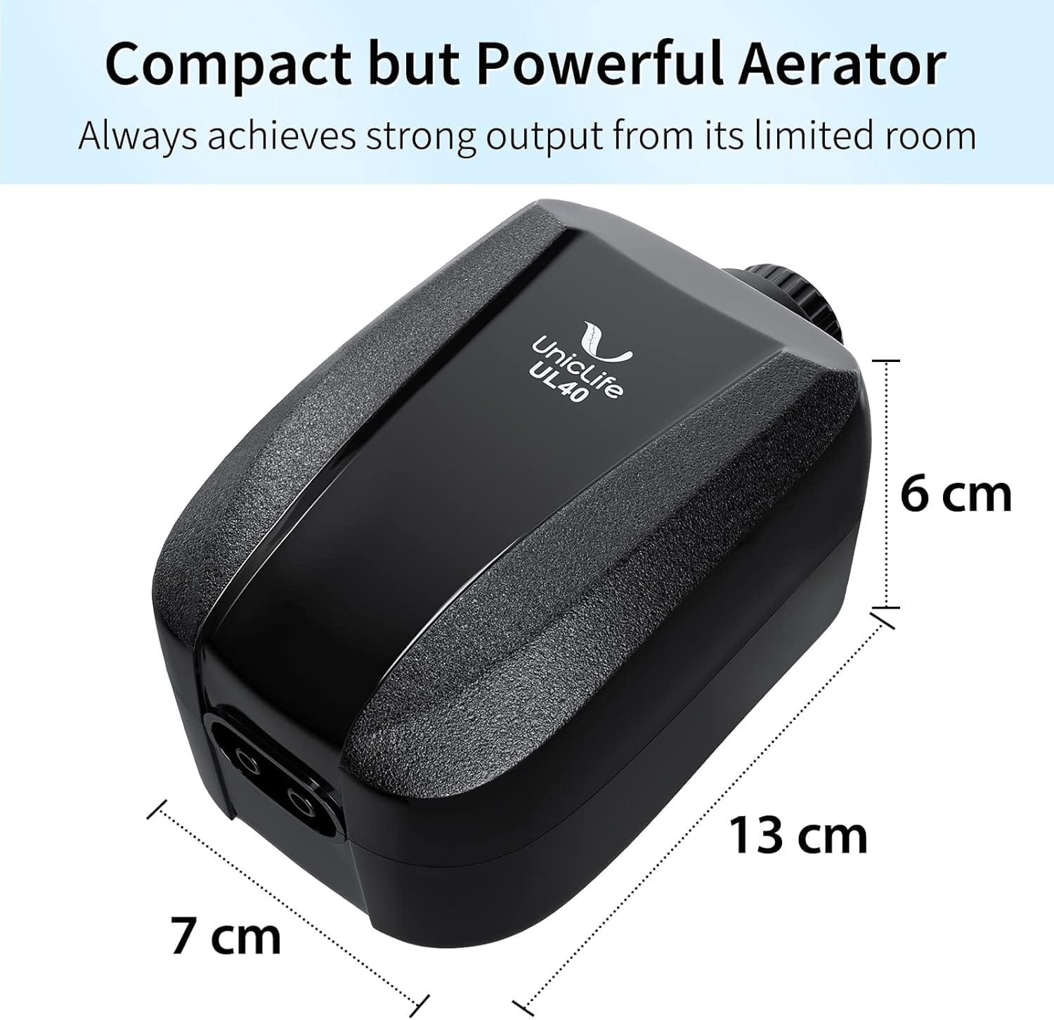 Flujo de aire ajustable: Dispone de un mando giratorio para controlar la cantidad de aire para salidas dobles, permitiendo el flujo de aire que desee para oxigenar completamente su acuario.