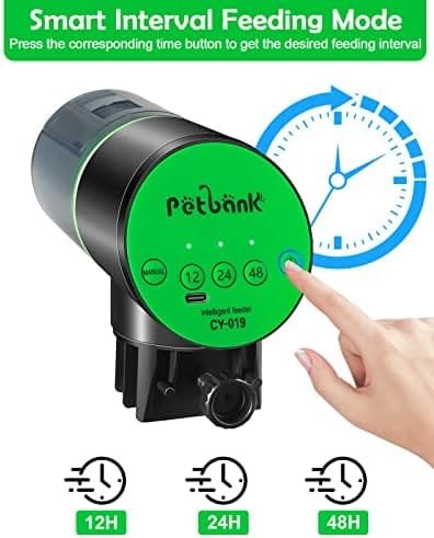 3 Modos de Intervalo Inteligentes – Pulsando el botón de tiempo correspondiente, el alimentador automatico acuario permite el intervalo de alimentación con rotación automática cada 12 horas, 24 horas o 48 horas.