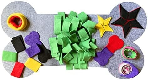 ¡Ofrecele a tu mascota una experiencia única con esta alfombra olfativa de entrenamiento! IDEAL PARA: El tamaño de esta alfombra es muy adecuado para perros y gatos. Cualquier animal con instinto alimenticio puede beneficiarse de este accesorios de juguetes para perros ALIVIO DEL ESTRÉS: De igual manera cuando no estés en casa, tu mascota tendrá siempre la oportunidad de divertirse y aliviar su ansiedad cuando está agitada. Cuida de su salud tan física como mental. EJERCICIO: Escondiendo comida seca dentro de la alfombra, le permitirás a tu gato o perro hacer un poco de ejercicio buscando a sus alimentos. ¡Perfecto para perder peso! DATOS TÉCNICOS Material: Forro polar, tejido oxford y poliéster Apta para lavadora (30 °C) No adecuado para secadora QUÉ INCLUYE LA ENTREGA 1x Alfombrilla olfativa para mascotas