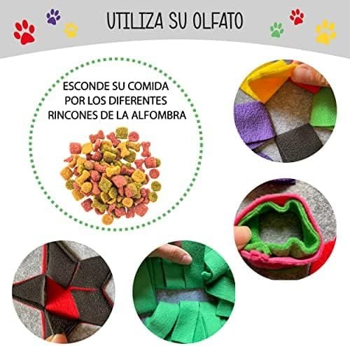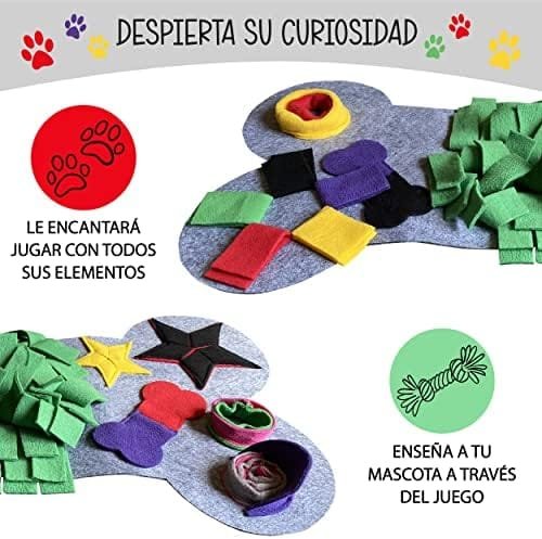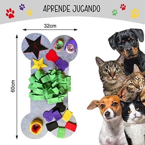 SALUDABLE: Esconde todo tipo de comida o regalos, pienso, pelota, juguetes o golosinas dentro del tapete a la hora de comer o jugar. Los perros disfrutarán olfateando y buscando la comida mientras juegan y despertarán su curiosidad intentando encontrar el alimento. Ayuda a entrenar el olfato de tu perro, consumir energía y perder peso.