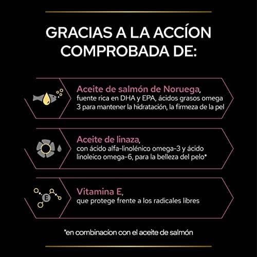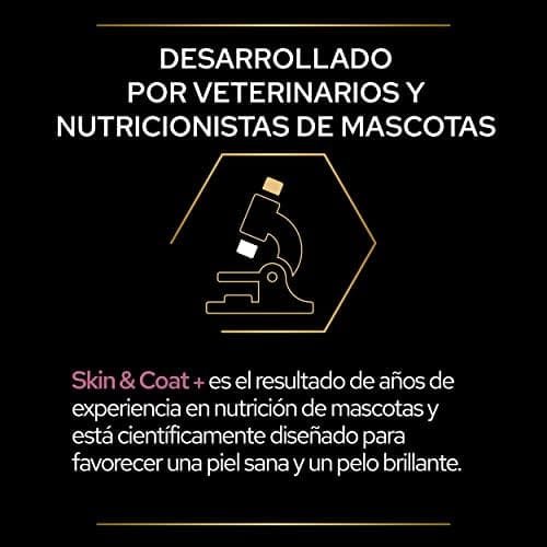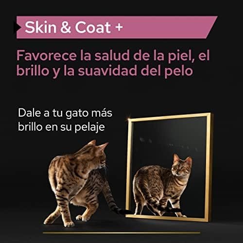PRO PLAN Skin&Coat+ nutre la piel y el pelaje de tu gato desde el interior gracias a su contenido en nutrientes esenciales tales como ácidos grasos omega 3 y 6 procedentes del salmón noruego, aceite de semillas de lino y vitamina E, y está científicamente diseñado para apoyar una piel saludable (hidratación y firmeza) y un pelaje brillante