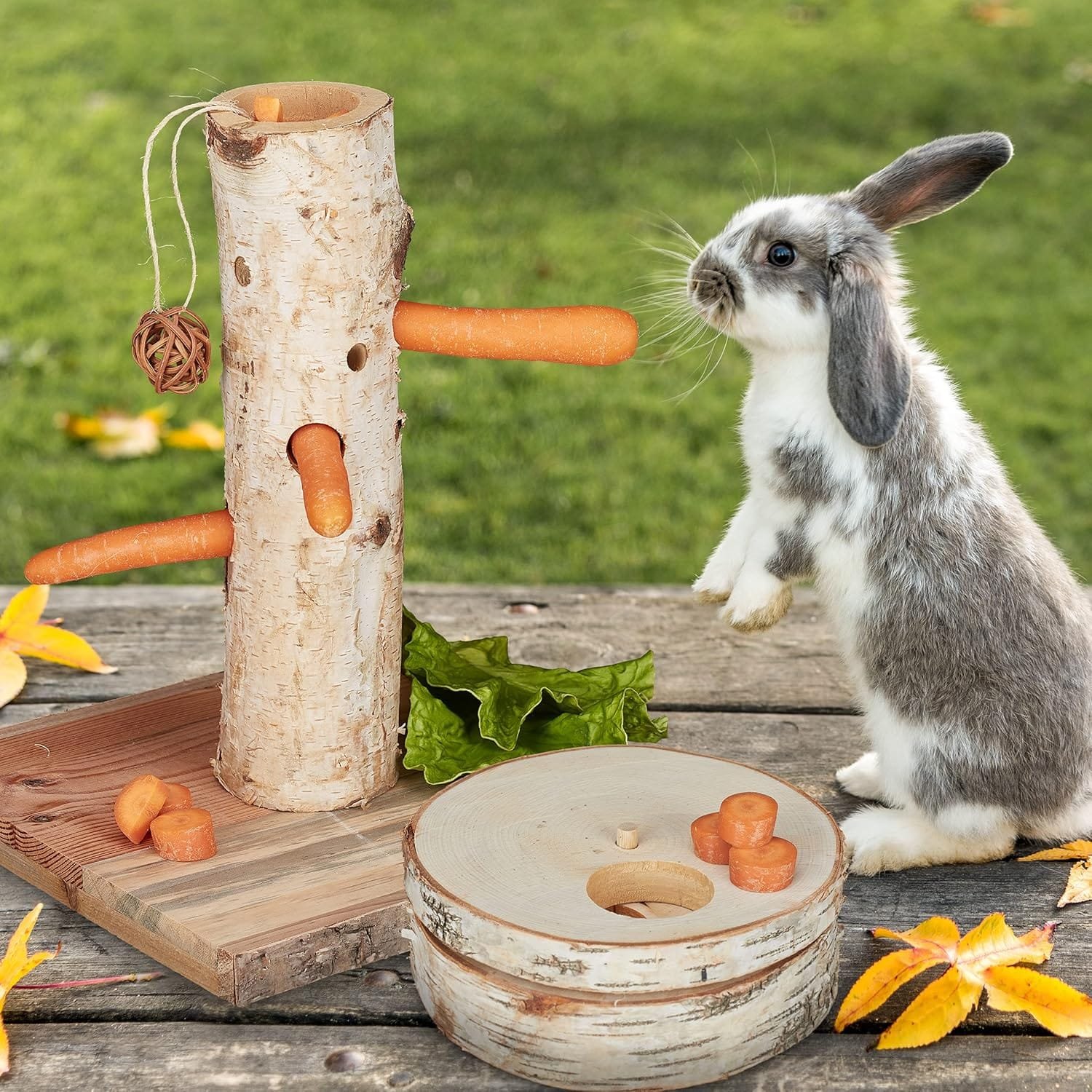 Set de 2: accesorios para conejos o cobayas que incluyen árbol comedero y un juguete de inteligencia