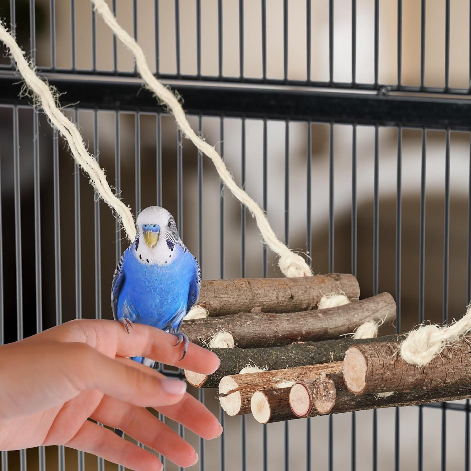 Diversión: escalera para pájaros de madera para entretener la vida en jaulas o pajareras
