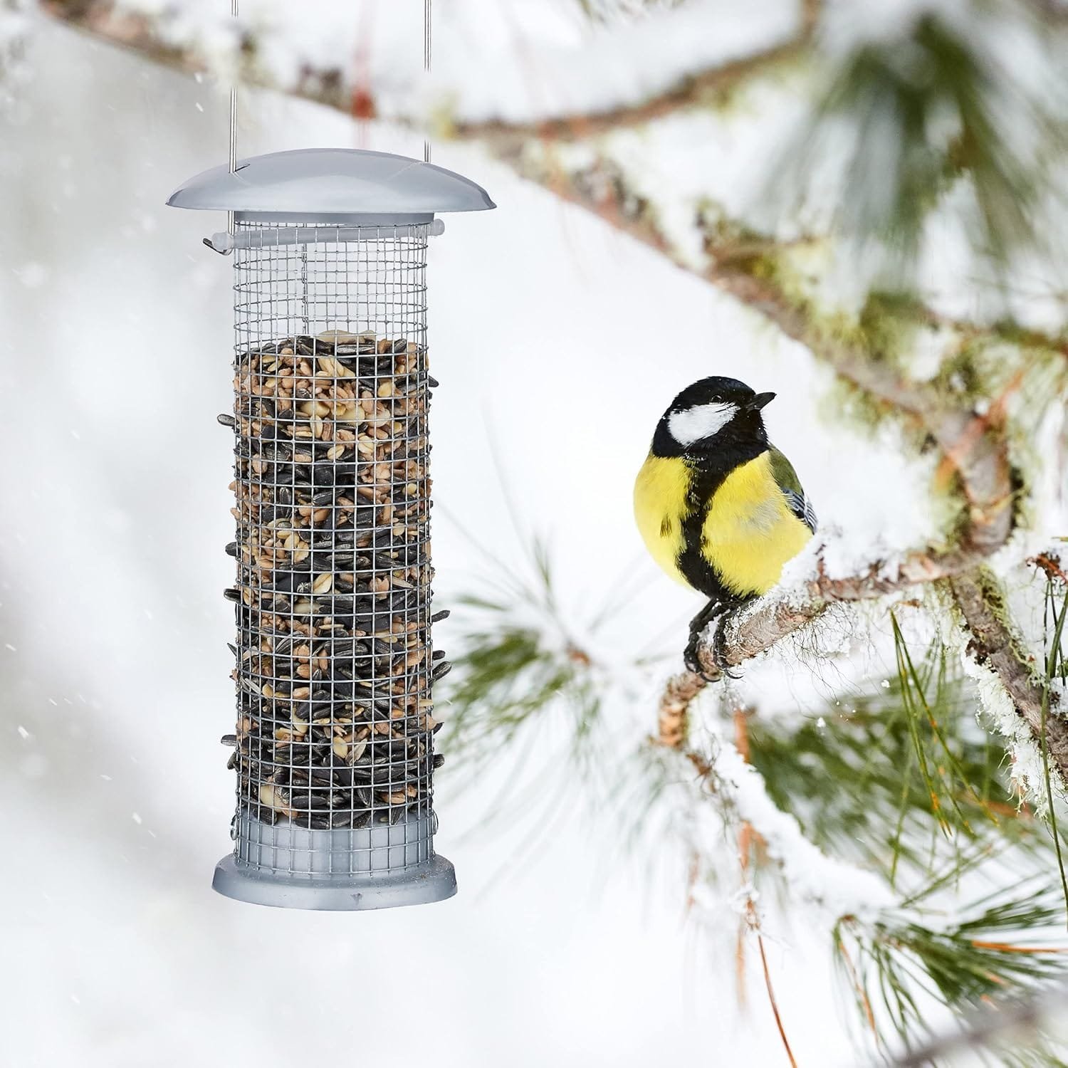 Resistente: comedero de gorriones con techo que protege del mal tiempo. Para rellenar con cacahuetes