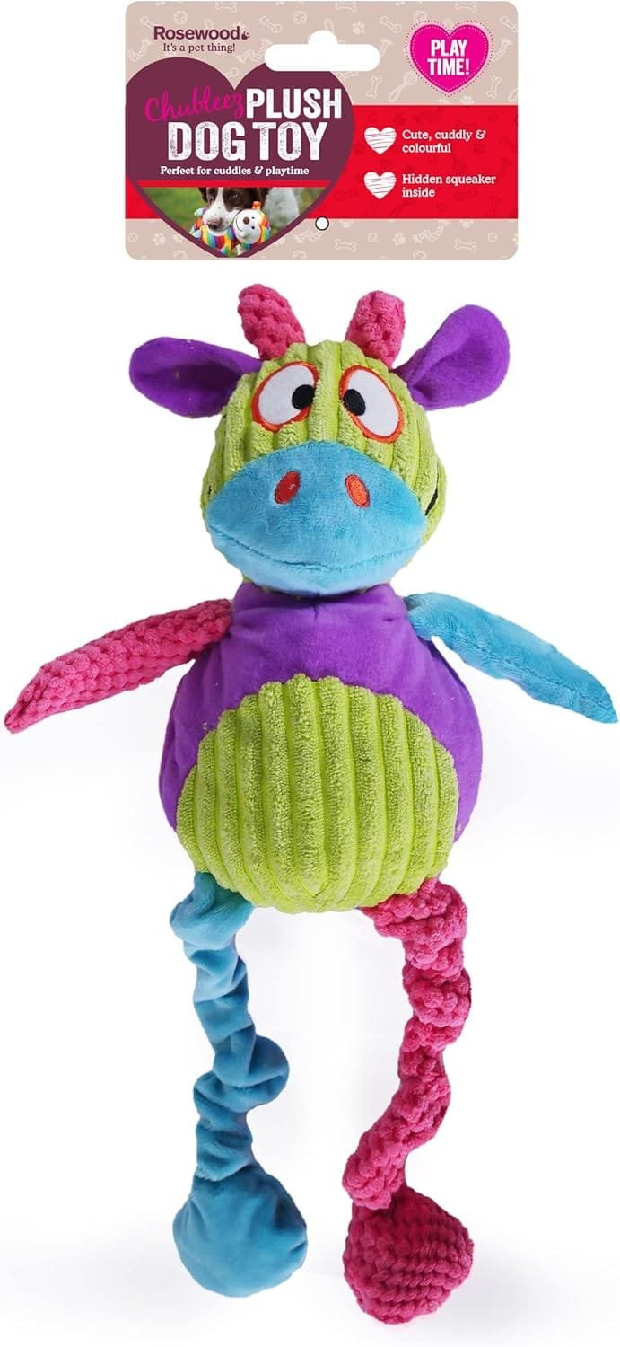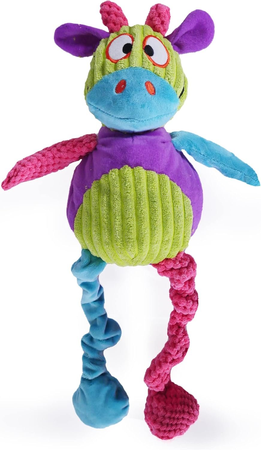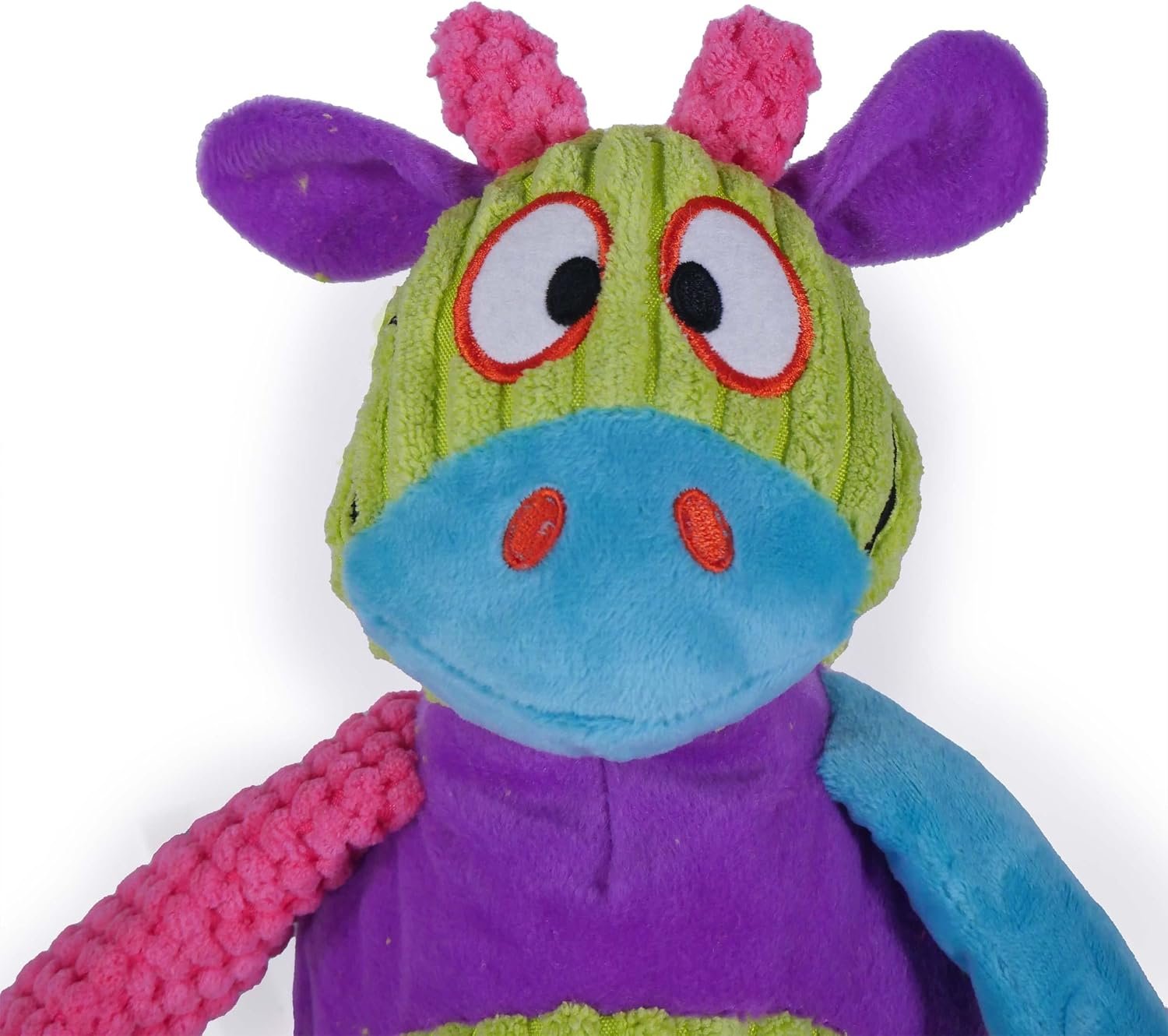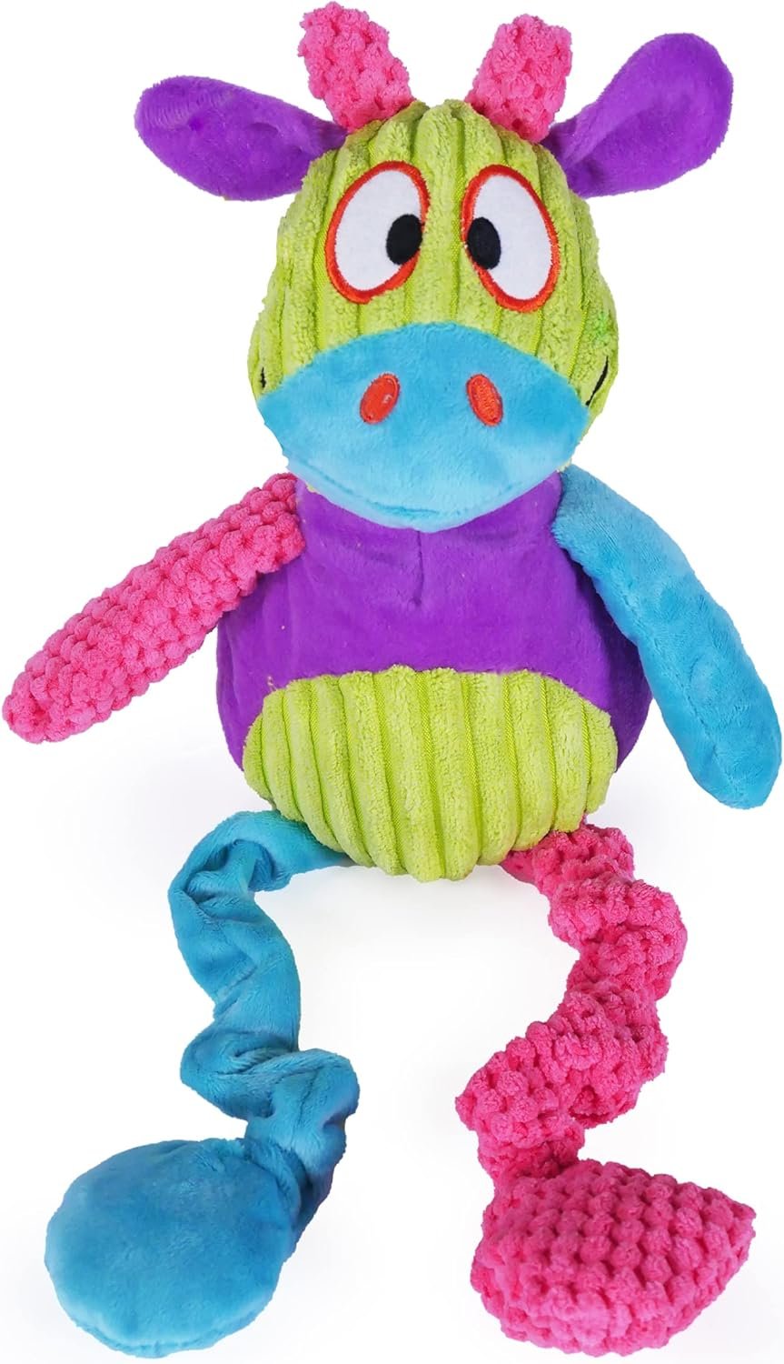 Achetée pour ma golden retriever relativement vorace avec les doudous. Superbes couleurs et texture qui résistent à la machine à laver sans problème.Vraiment sympa car assez grande, notre amie à 4 pattes s’amuse autant en jouant seule avec, qu’en nous la ramenant pour jouer avec nous. Différentes textures: ventre rembouré, membres fins qui s’allongent (élastiques souples), sonorité rare et non stridente (Parfait pour moi).Ce doudou résiste relativement bien, même si au bout de quelques semaines, cette vache a perdu un peu de ventre ððððð d’habitude, les doudous sont dévorés en 24h…. Et pourtant, elle l’adore et n’y va pas de main morte avec! Superbe achat, je n’hésiterai pas à racheter la petite sÅur lorsque celle-ci rendra l’âme….