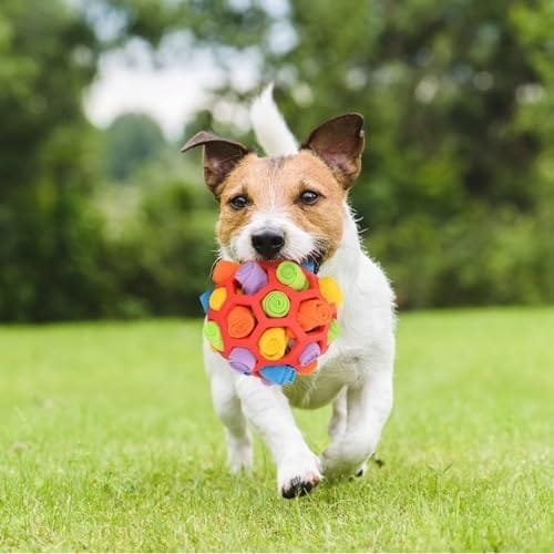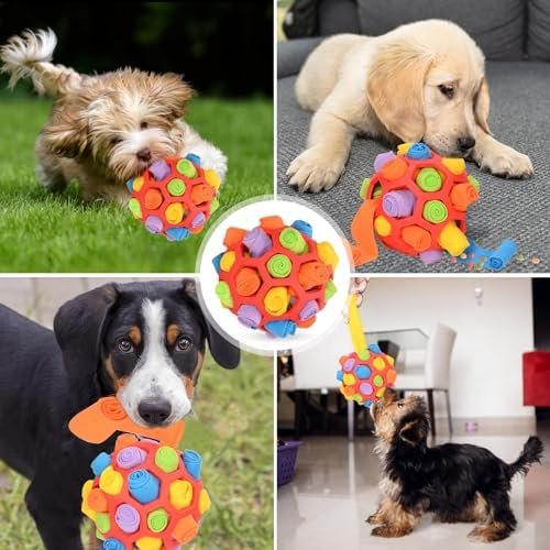 🐕💝【Pelota de olfateo para Perros】: Nuestra pelota de olfateo es adecuada para todos los perros, independientemente de su tamaño y edad. Pueden encontrar sus propias formas interesantes de jugar con esta pelota. Este juguete para perros puede estimular su curiosidad, los perros necesitan usar su inteligencia y sentido del olfato para encontrar comida. Este juguete interactivo de snuffle puede mantener a tu perro activo durante mucho tiempo mientras ejercita su cuerpo e inteligencia.