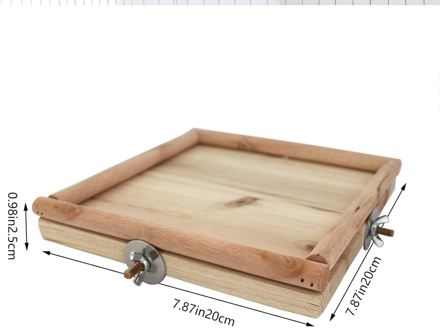 Tamaño perfecto: el tamaño de la plataforma de soporte para loros es de 7.87 × 7.87 × 1 pulgadas/20 × 20 × 1 pulgada (largo x ancho x alto), y el espacio es lo suficientemente grande como para acomodar múltiples loros o pájaros de pie.