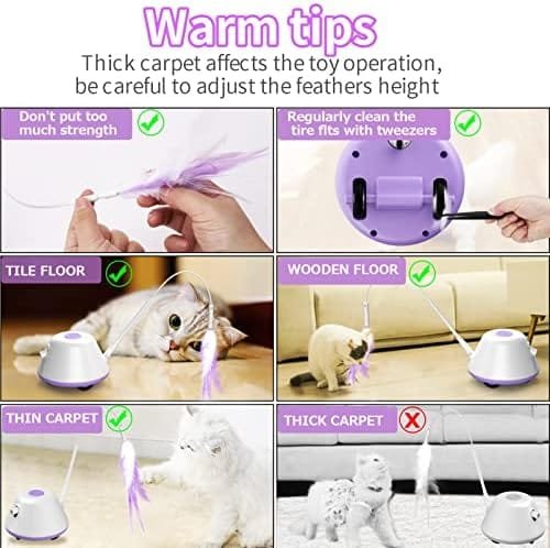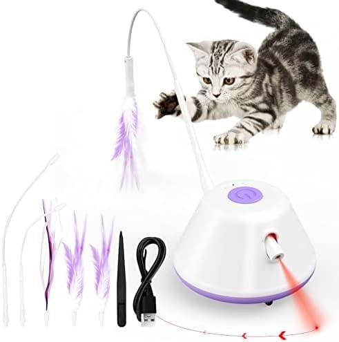 [3 en 1 juguete de gato inteligente] -Este juguete de gato inteligente combinado con juguete de plumas, juguete LED y juguete en movimiento, una buena opción para que su gato de mascotas para aliviar la soledad y la ansiedad, libere el exceso de energía, aumente la felicidad del gato, inhibe el peso de la Grasa, mantenga la gestión de peso saludable.