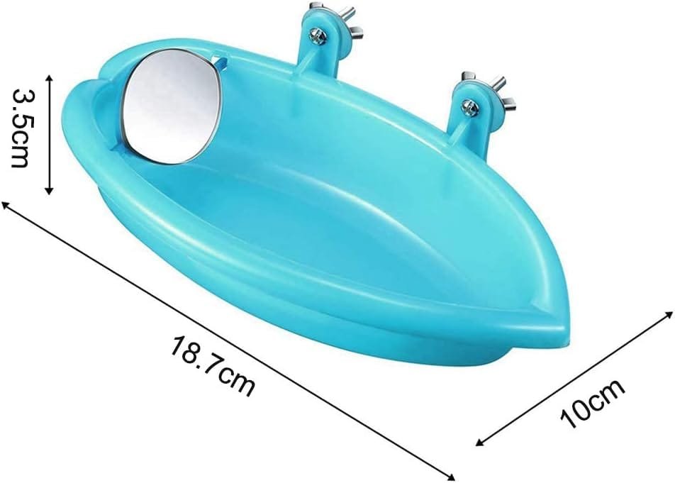 Se me ha roto los bordes de sujeción del espejo en seguida ( plástico muy fino y muy débil). El tamaño de la bañera esta bien para un periquito o un canario pero el sistema de sujeción no es nada practico. Ya que esta fijado a la jaula, cada vez que quieres cambiar el agua ( normalement es todos los dÃas) tienes que desmontar todo y remontar todo.