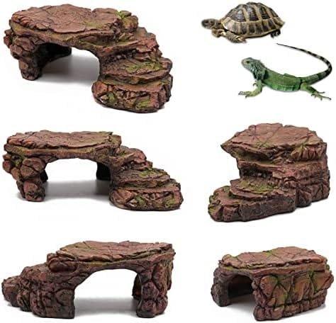 DISEÑO MULTIFUNCIONAL: el exclusivo diseño trapezoidal de fondo plano de la piedra de paisaje artificial crea una atmósfera natural, adecuada para que las tortugas marinas se arrastren hacia arriba y hacia abajo, aumenten su capacidad atlética y mejoren su físico, que es crucial para su salud.