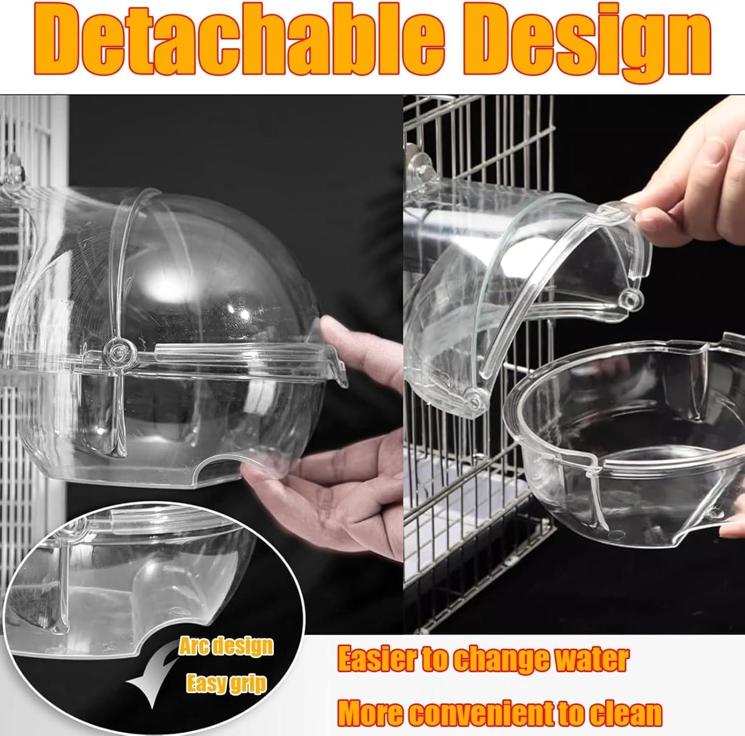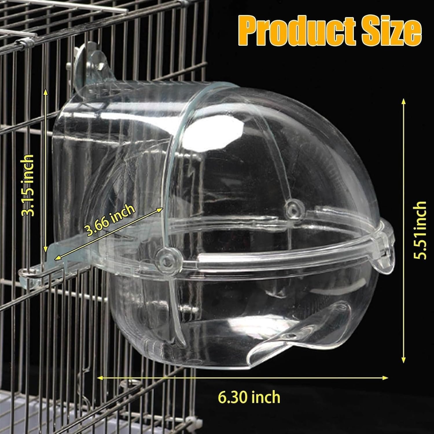 【Tamaño perfecto】 Con unas dimensiones de aproximadamente 6,3 x 6,3 x 5,5 pulgadas, la caja de baño para pájaros es ideal para periquitos, periquitos, tortolitos, pinzones y otros pájaros pequeños. Se recomienda colocar la caja de baño de pájaros fuera de una jaula cuadrada con una abertura de aproximadamente 3,1 x 3,6 pulgadas para un fácil acceso. Dale a tus pájaros un espacio de baño de tamaño perfecto para su comodidad y placer.