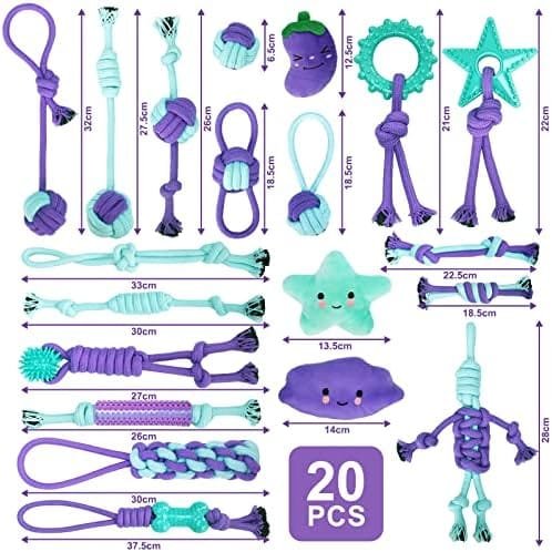 💖【20 Piezas De Juguetes Interactivos Para Perros】Este conjunto de juguetes populares para perros contiene un total de 20 juguetes con diferentes funciones, como nudos para masticar, bolas de cuerda, juguetes de peluche, juguetes interactivos, huesos para perros, etc., que pueden cumplir con los diversos de las necesidades y deseos de los perros.