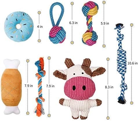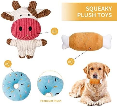 Gran juguete para cachorros para sus perros: El juguetes para perros cachorros juguetes para cachorros incluye varios tipos de juguetes, juguetes chirriantes (rosquilla rellena, huesos, vaca) y juguetes para masticar que son beneficiosos para la salud física y mental de su perro.