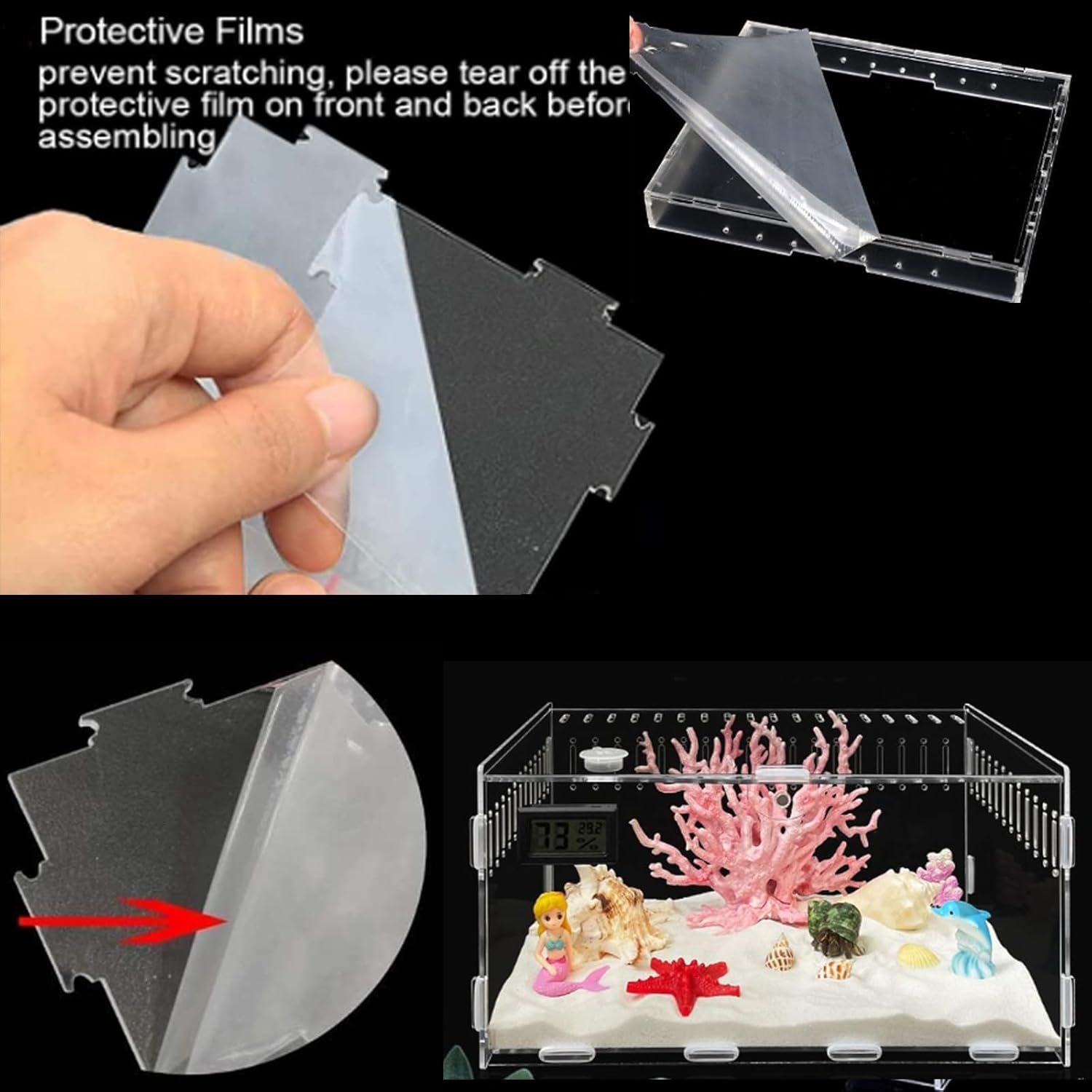 【Note】terrario,está cubierto con una película protectora en ambos lados,Para el montaje, la película protectora debe ser removida antes de que pueda ser transparente