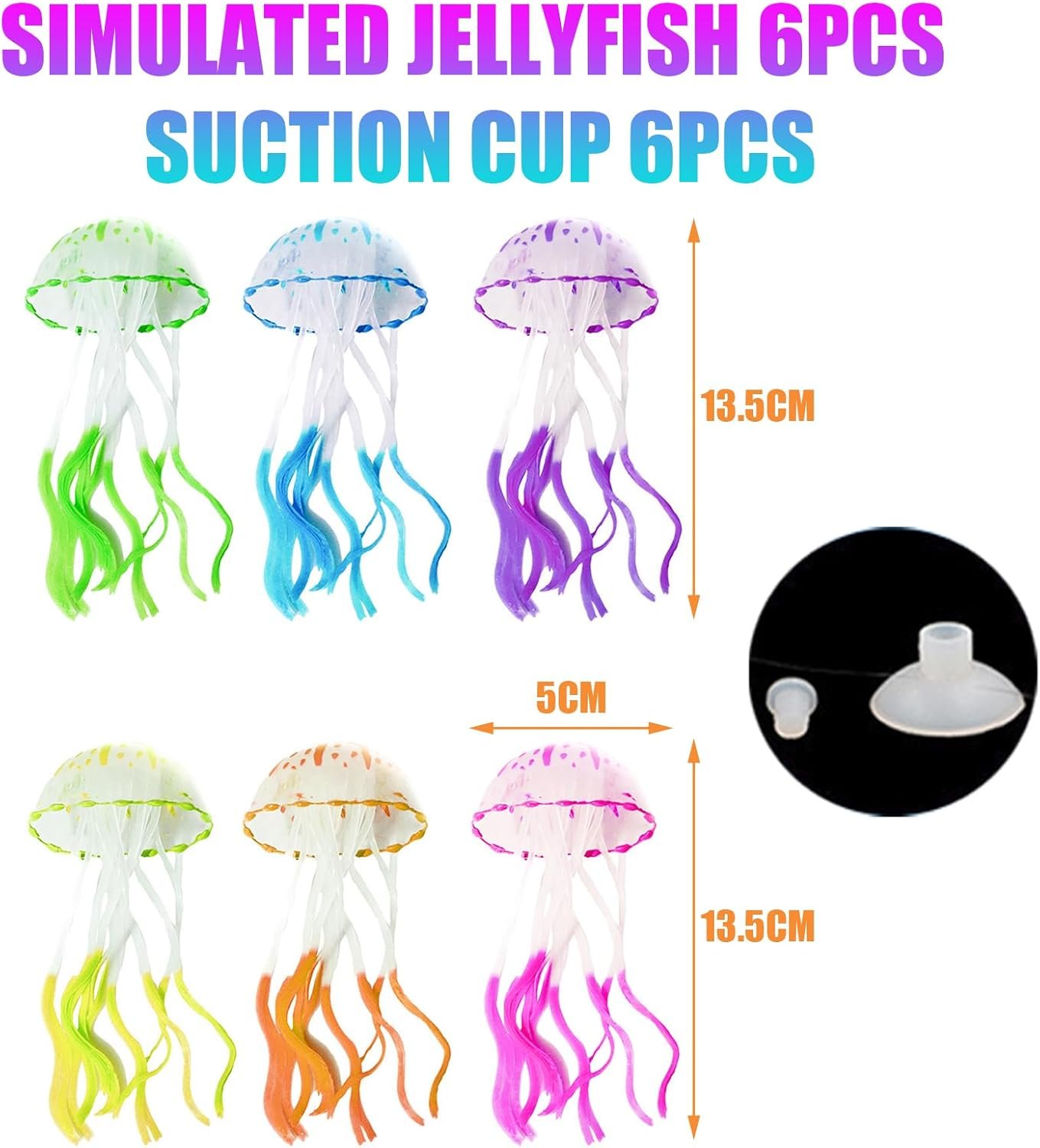 Lista de paquetes: Recibirás 6 medusas de imitación en diferentes colores, que son de colores brillantes y realistas cuando se colocan en la decoración de la pecera. Creo que quedarás satisfecho.