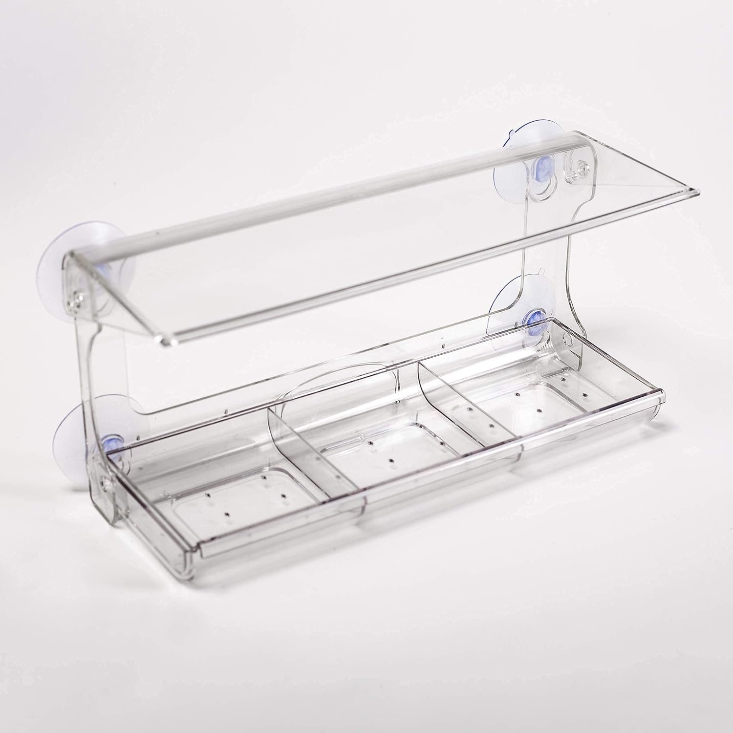 Nuestro comedero para pájaros, hecho de robusto plástico de policarbonato, puede limpiarse y llenarse fácilmente sin tener que soltar las ventosas gracias al compartimento extraíble del comedero.