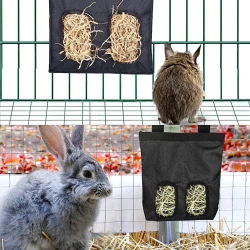 Cómodo de limpiar: lo mejor de este alimentador de heno para conejos es que mantiene la casa limpia, mantiene un suministro generoso de heno en un alimentador de estilo bolsa limpio y organizado, ayuda a reducir el desperdicio de heno Mantiene el área de la jaula limpia y fresca