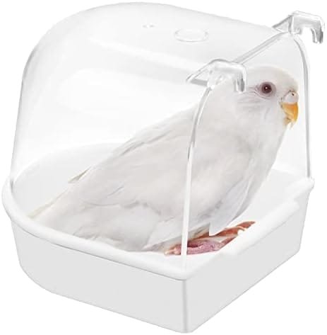Amplio uso: La bañera para pájaros es adecuada para pájaros pequeños como periquitos, cotorras, pinzones, canarios, cacatúas, etc. Un nuevo y confortable hábitat para su mascota.