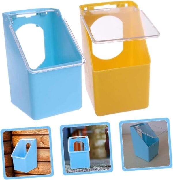 : puede colocarlo en la jaula para loros, se puede usar para guardar comida para pájaros, un tazón de comida útil y conveniente para jaulas para pájaros.