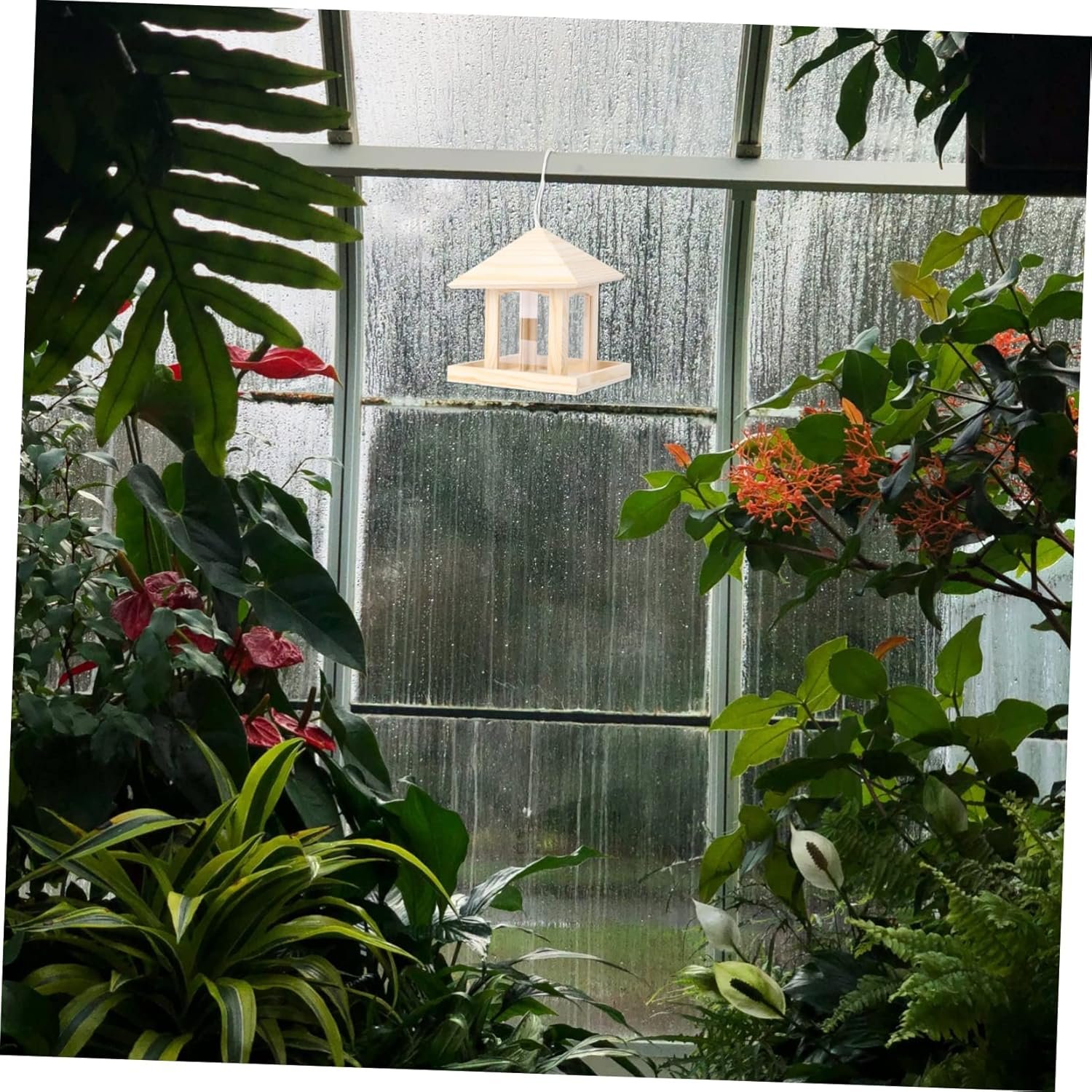 Comedero para pájaros de madera: el tamaño suficiente es adecuado para contener suficiente comida. también es una gran decoración para el jardín.