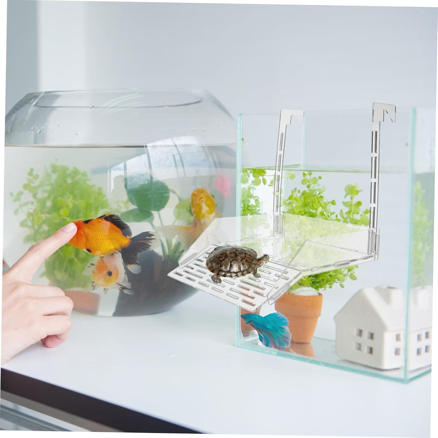 Terrarios para reptiles: la plataforma transparente para tomar el sol para tortugas facilita el ascenso y la alimentación con agua fácilmente, muelle colgante para tanque de tortugas