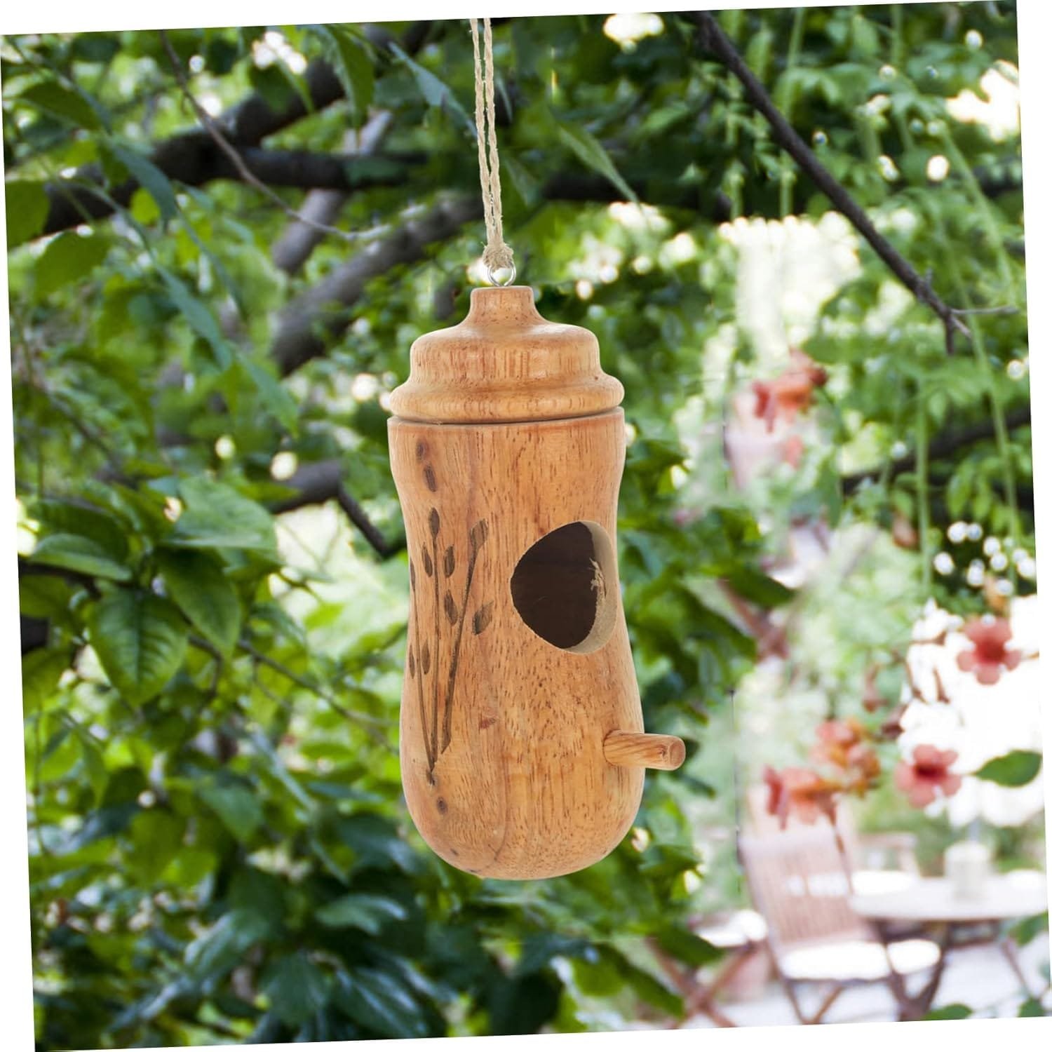 Decoración decorativa para exteriores: este comedero para pájaros para exteriores tiene un diseño de apariencia colgante, perfecto para colgar en el árbol.