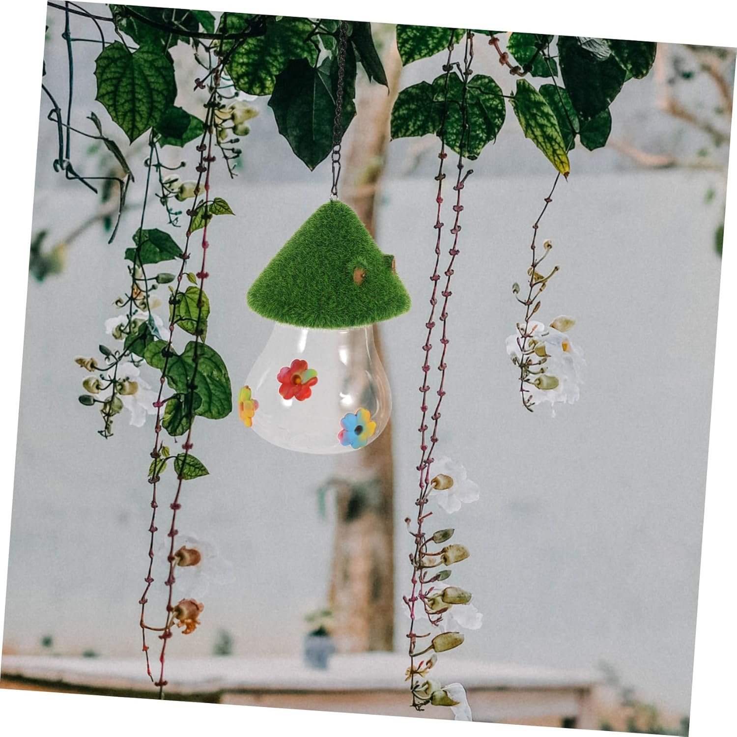 -material: comederos para colibríes con forma de seta de plástico comedero para colibríes colgante comederos para pájaros silvestres dispensador de agua para pájaros comederos para colibríes de jardín bebedero para colibríes pájaro colgante aire libre comedero comederos de comida para pájaros dispensador de comida para colibrí comedero para casa de pájaros
