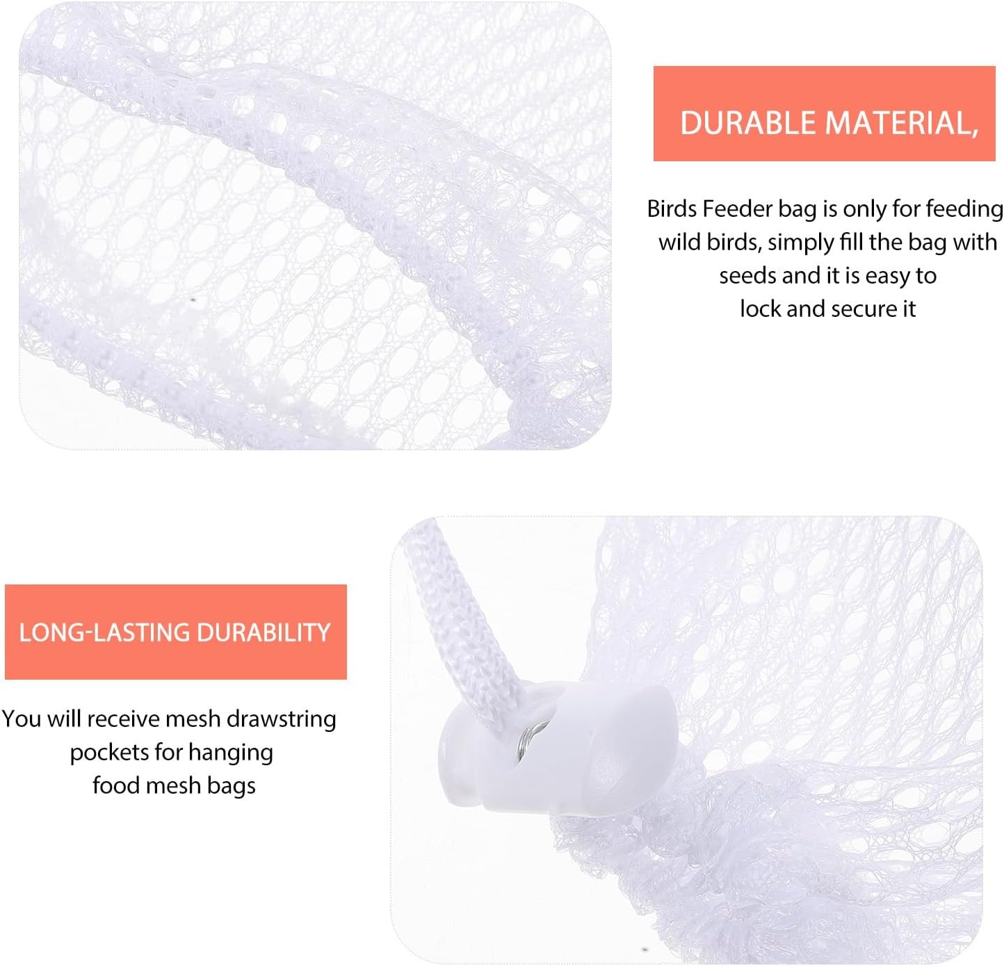 Bolsa de alimento para aves silvestres: nuestras bolsas de comida para pájaros están hechas de materiales de poliéster, son resistentes a las roturas.