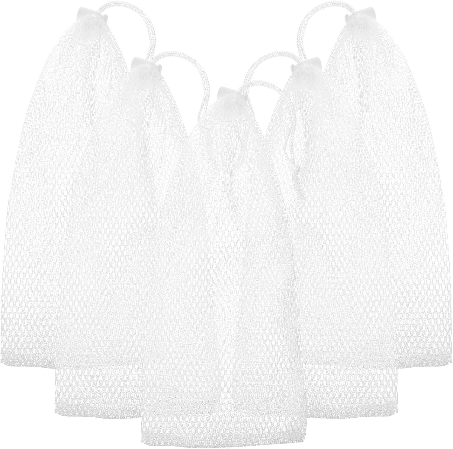 5 bolsas de malla para comida para pájaros, comedero colgante para pájaros, red de alimentación de malla para pájaros, bolsa de alimentación para pájaros, calcetines para comederos de pájaros, tubo blanco, bolsa de malla de poliéster