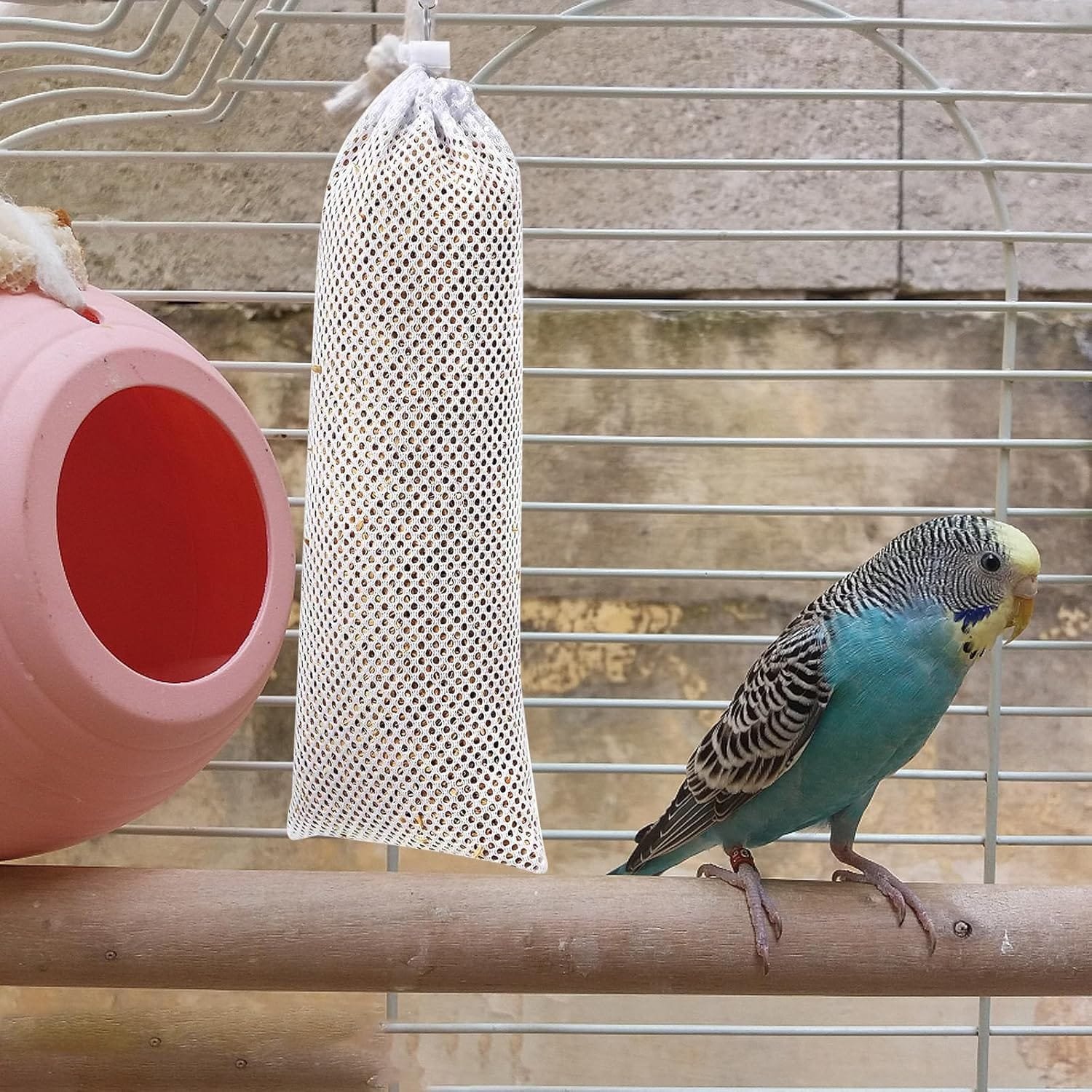 Bolsa de red para pienso para pájaros: esta bolsa de malla es suficiente para que los pájaros coman, de alta calidad no se caerá después de llenarse, también se pueden derramar.