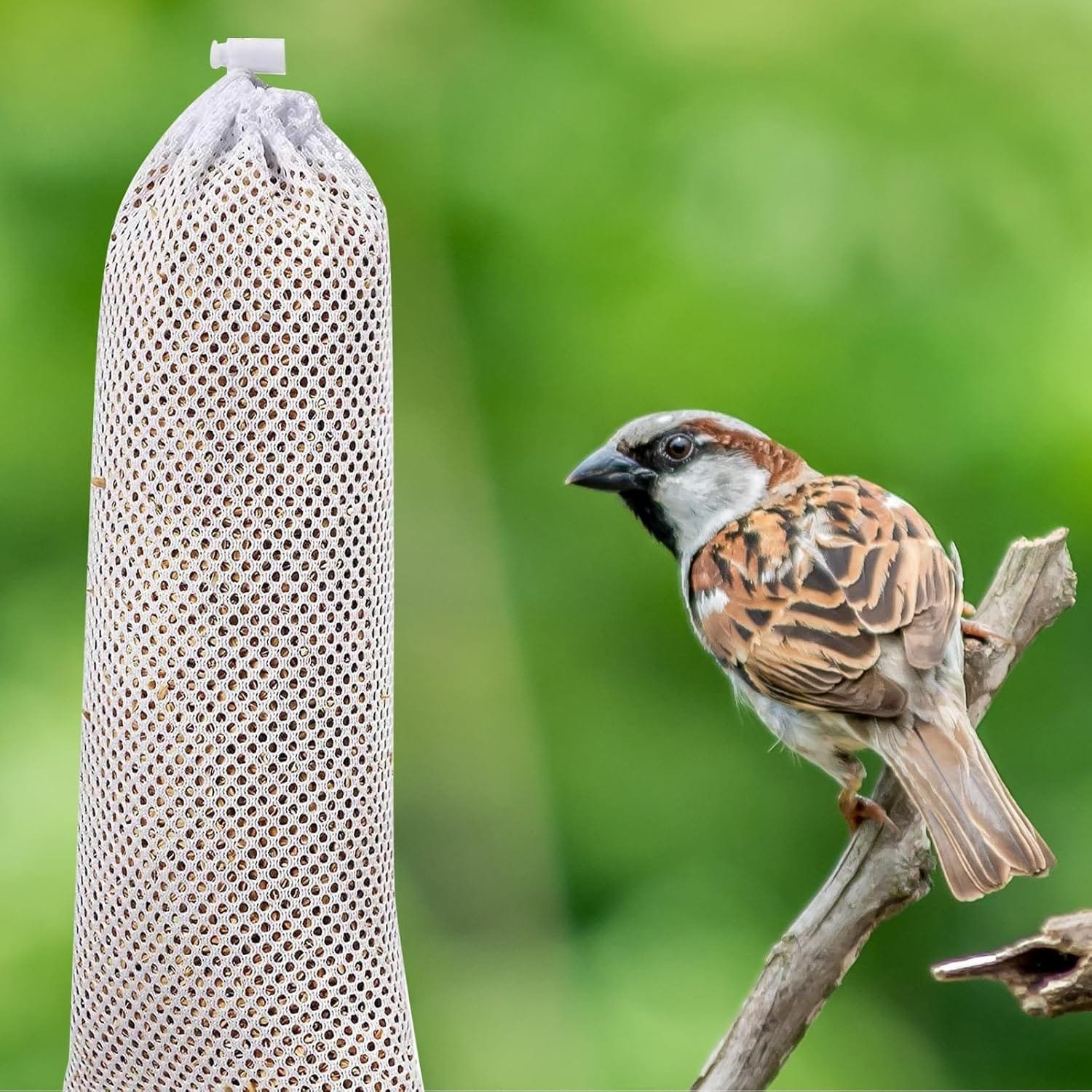 Bolsa de red para alimentar a los pájaros: este comedero está hecho de materiales de poliéster para una vida útil segura.