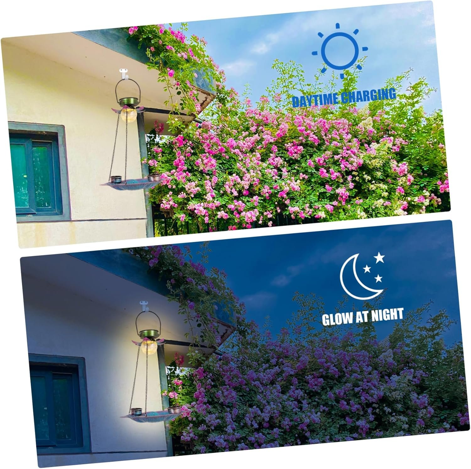 : no solo un comedero para pájaros colgante o un bebedero para pájaros para el exterior, sino también un comedero para pájaros al aire con decoración de luz solar para jardín.