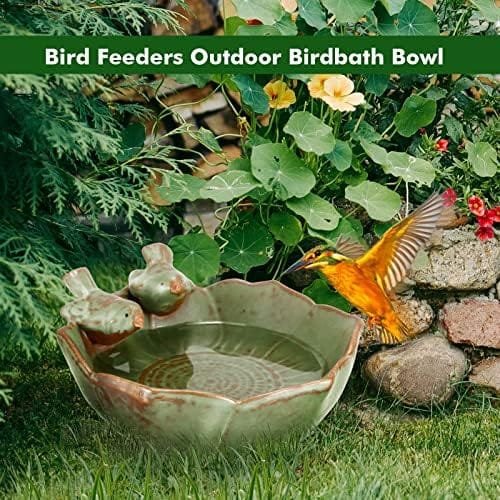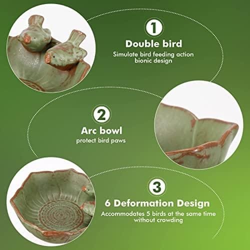 El comedero viene con estilo retro con dos pájaros pequeños diseñados en el borde, y los pájaros parecen estar llorando por ser alimentados, vívidos y clásicos, perfecto para la decoración del jardín.