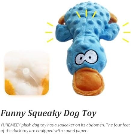 🐾【 Divertido Juguete Chirriante para Perros 】: El juguete de felpa para perros YUREMEEY tiene un chirriante en el abdomen. Cuando el perro lo muerde, hará un sonido BB, que puede despertar el interés del perro. Las cuatro patas del juguete de pato están equipadas con papel de sonido, que hará un sonido cuando el perro está jugando para atraer la atención del perro.