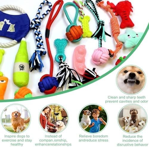 YUTUY Juguetes para Perros,21 Piezas Juguete para Morder para Perro,Durable Masticable Cuerda,Juguetes Interactivos para Limpiar los Dientes Adecuado,Cuerda Juguete,para Perros Pequeño y Mediano