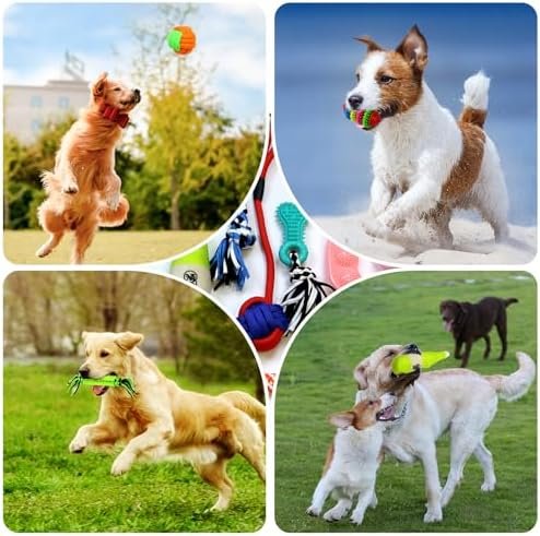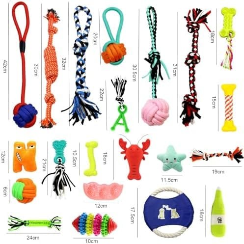 🐕🐕【Juego de Juguete para Perros de 21 piezas】Los Juguete Perro incluyen nudos para masticar, bolas de cuerda, juguetes de disco volador, juguetes chirriantes populares, estos coloridos juguetes de cuerda pueden estimular fácilmente el interés de su perro y reducir la soledad y el aburrimiento. Juguetes Perro diferentes colores y formas, perfectos para mascotas de diferentes tamaños.