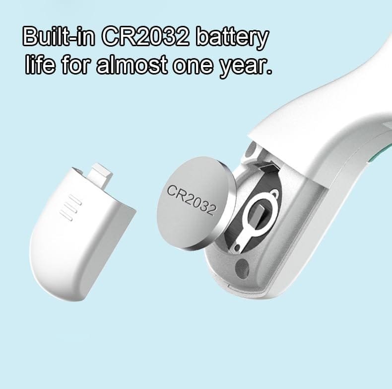 Batería de botón CR2032 incorporada para un uso seguro y prolongado de al menos un año.