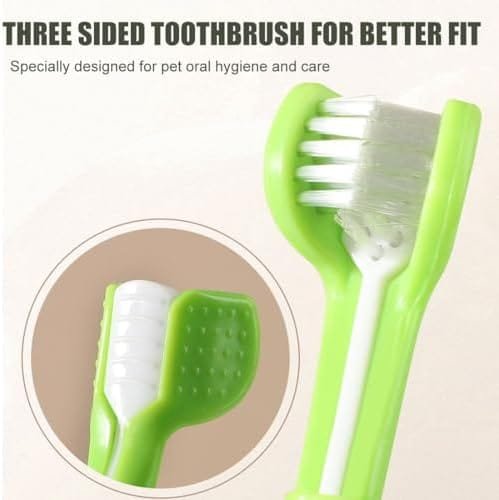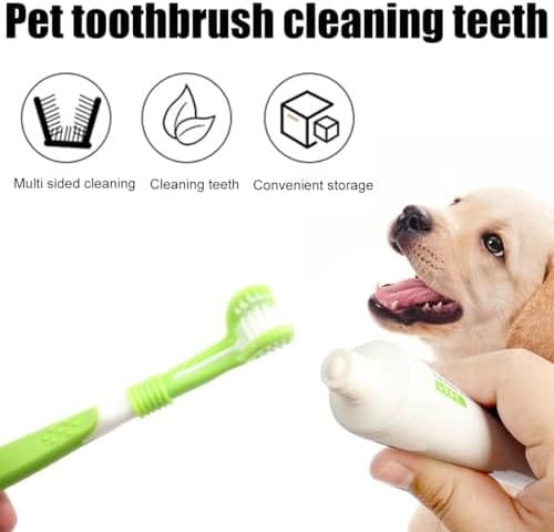 ZCSOWE Cepillo de Dientes para Perros, Paquete de 4 Cepillos de Dientes para Mascotas, Cepillos de Dientes para Perros, Cepillo de Dientes para Mascotas, Cepillo de Dientes de Triple Cabezal, Cepillo de Dientes para Gatos, Cuidado Dental Suave para Gatos, Higiene Bucal para Perros, Limpieza Profunda Cepillo de dientes para perros de tres cabezas: el cepillo de dientes para perros tiene tres cabezales que puede limpiar la parte superior, interior y exterior de los dientes al mismo tiempo. Elimina eficazmente la suciedad de los dientes y mantiene la boca limpia y libre de mal aliento. Fácil de usar: usar cepillos de dientes manuales y cepillos de dientes para perros es tan fácil como usar tu propio cepillo de dientes. Asegúrese de recompensar a su mascota con un comportamiento apropiado para