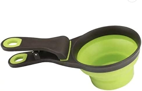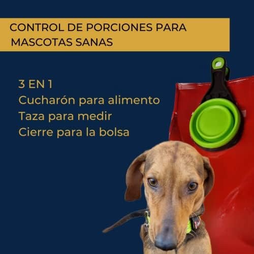 Cuchara medidora ideal porque permite el control de porciones para mascotas sanas. Puede utilizarse como contenedor pienso: se puede utilizar como cuenco para perros o cuenco para gatos.Cuchara con pinza: sirve como practico cierre para bolsas. De esta forma, se preservará el aroma y el sabor. Cuchara en silicona apta para lavajillas.Contenedor muy cómodo ya que se pliega por completo.